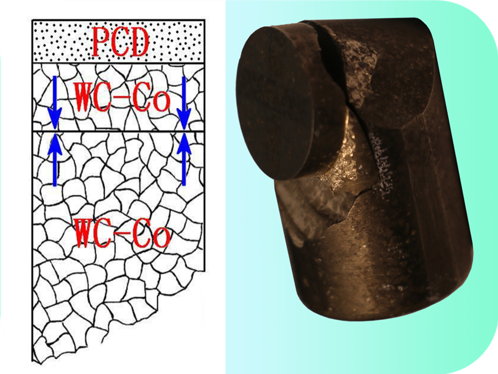 2.2.5 PDC 对基体的扩散焊接头强度超过硬质合金基体,断裂发生在硬质合金基体而不是结合处。